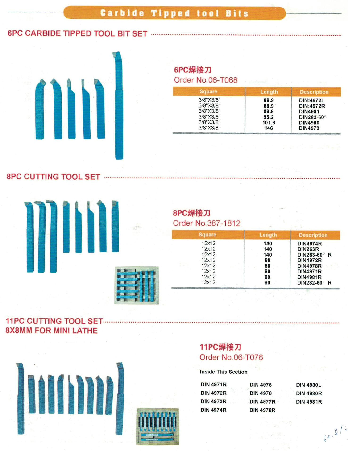 Bits de ferramentas com ponta de carboneto (definido como 6pcs/8pcs/11pcs)