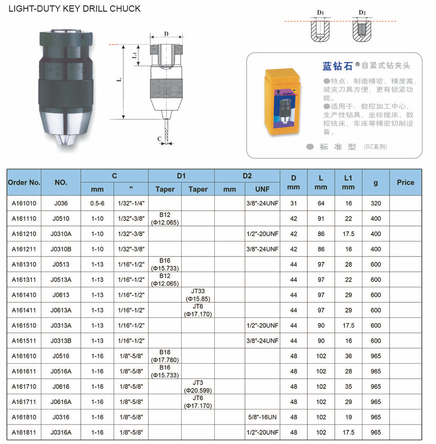 Broca de chave leve, broca
