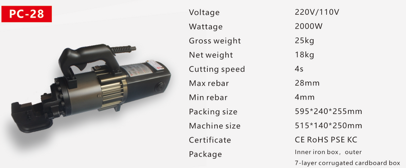 Cutter de vergalhão portátil PC-28