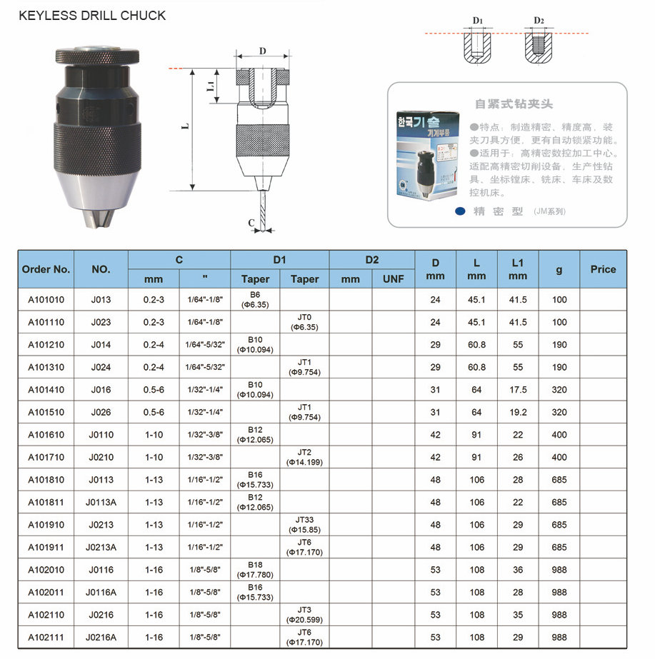 Drill sem chave Chuck