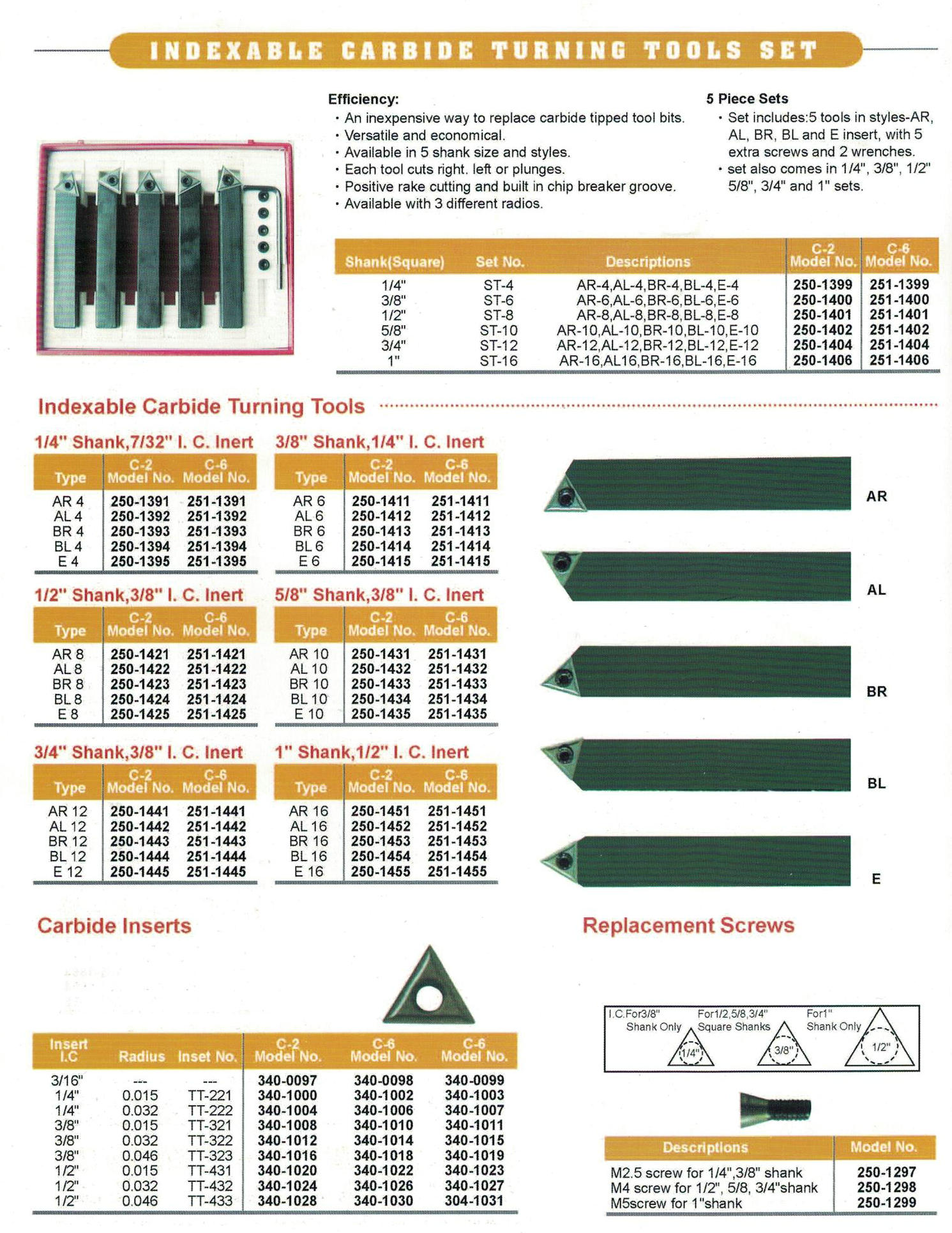 Ferramentas de torneamento de carboneto indexível definido (definido como 5pcs)