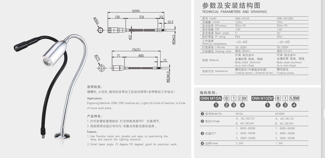 Lâmpada de trabalho ONN-M10A/M10ZM