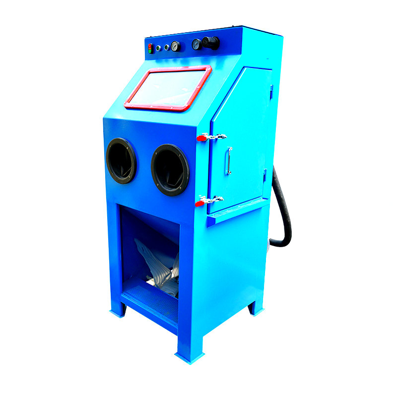 1.1 O corpo do gabinete de explosão de areia molhada é feita de placa de aço inoxidável de 3 mm com tinta, a parede interna é com borracha, a fim de melhorar a vida útil do equipamento.