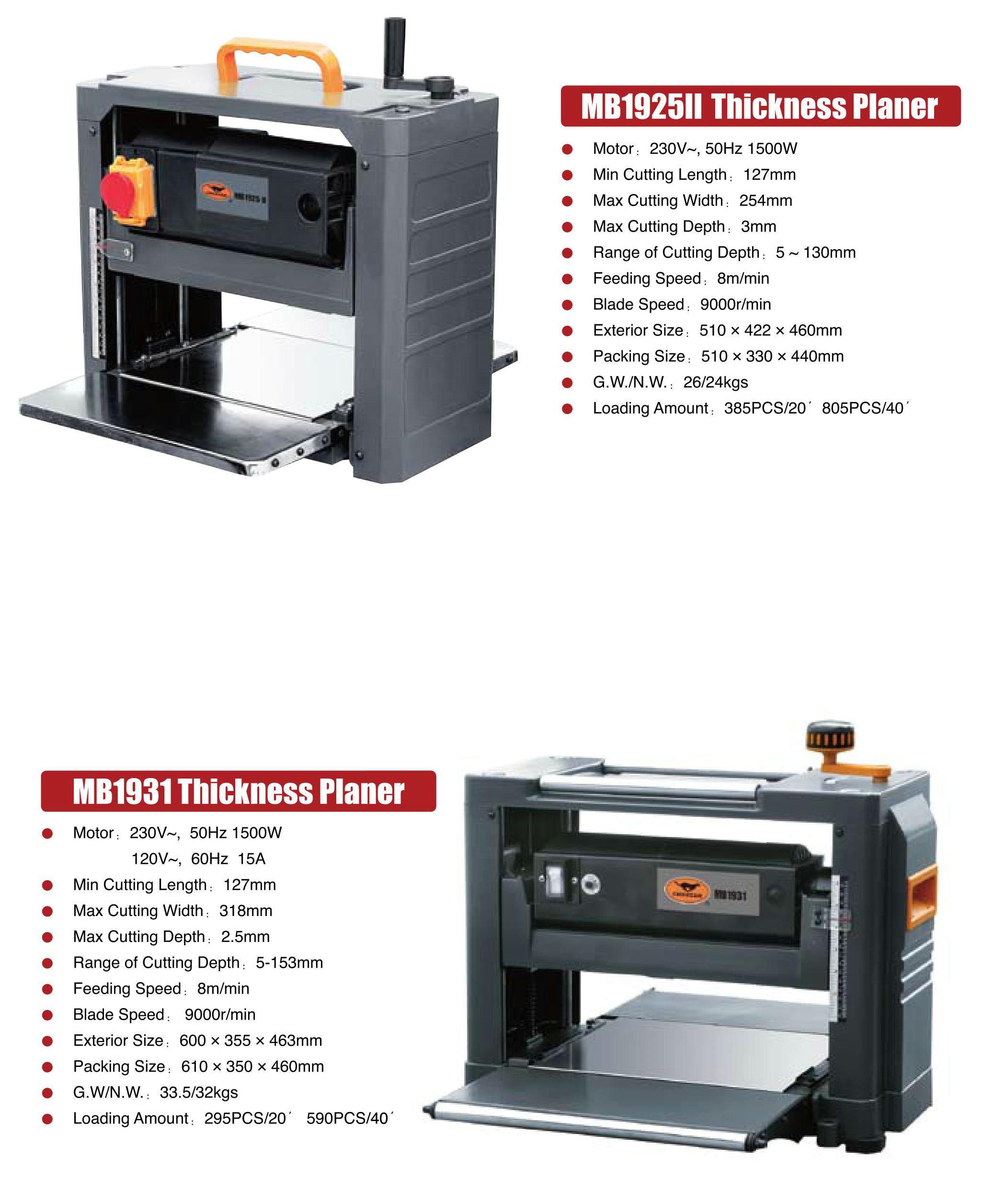 Planeira de espessura MB11925II -MB1931