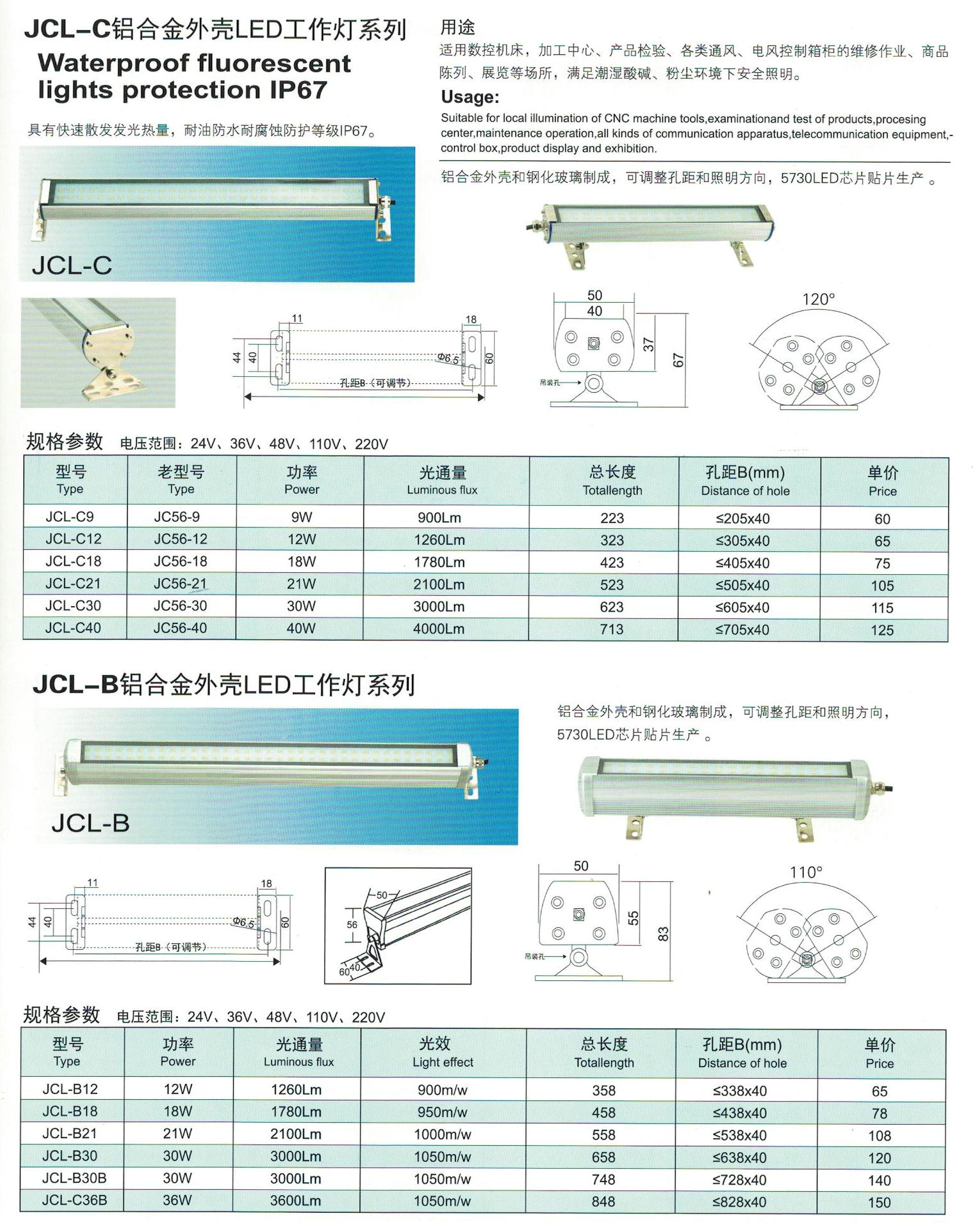 Série JCL Proteção de luzes fluorescentes à prova d'água IP67