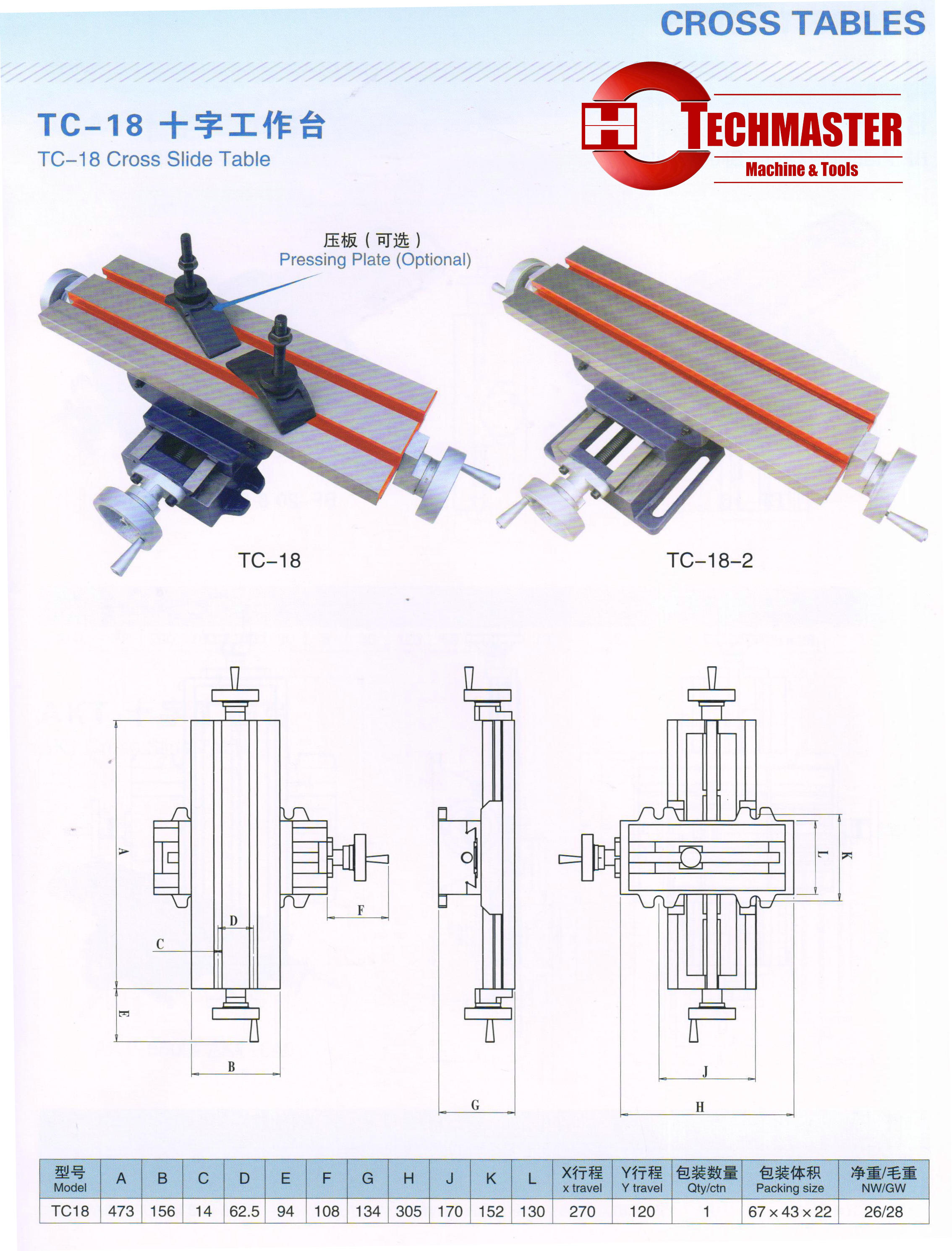 Tabela de slides cruzados TC-18